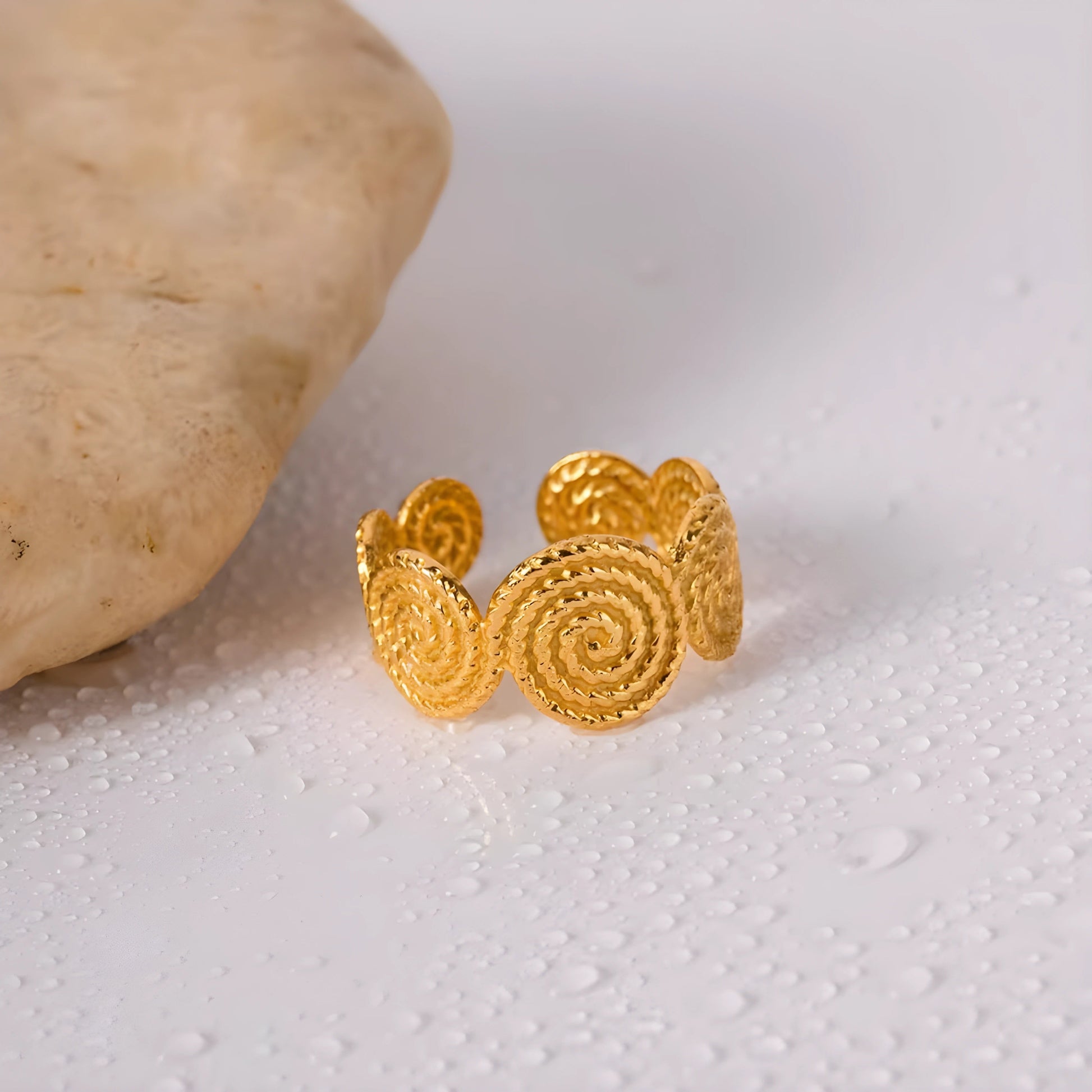 This versatile spiral ring adds a touch of artistic charm to both casual and festive outfits – ideal for women who love jewelry with character and elegance.